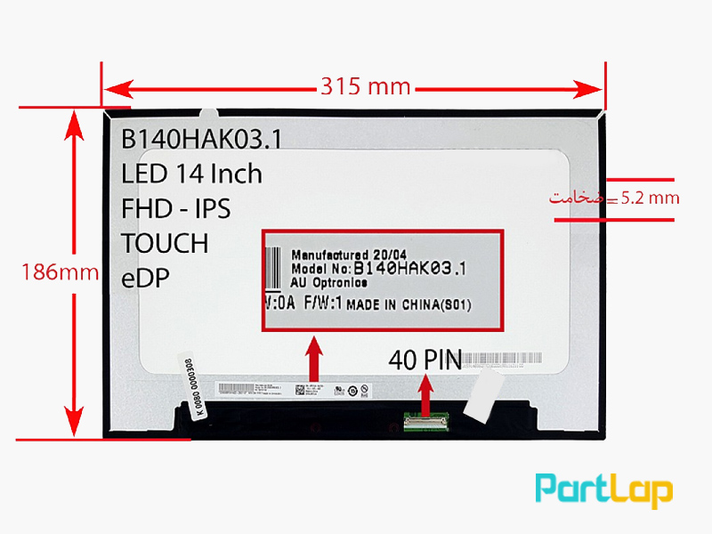 صفحه نمایش لپ تاپ 40 پین لمسی AUO B140HAK03.1 ، خرید با پایین ترین قیمت و گارانتی کیفیت پارت لپ