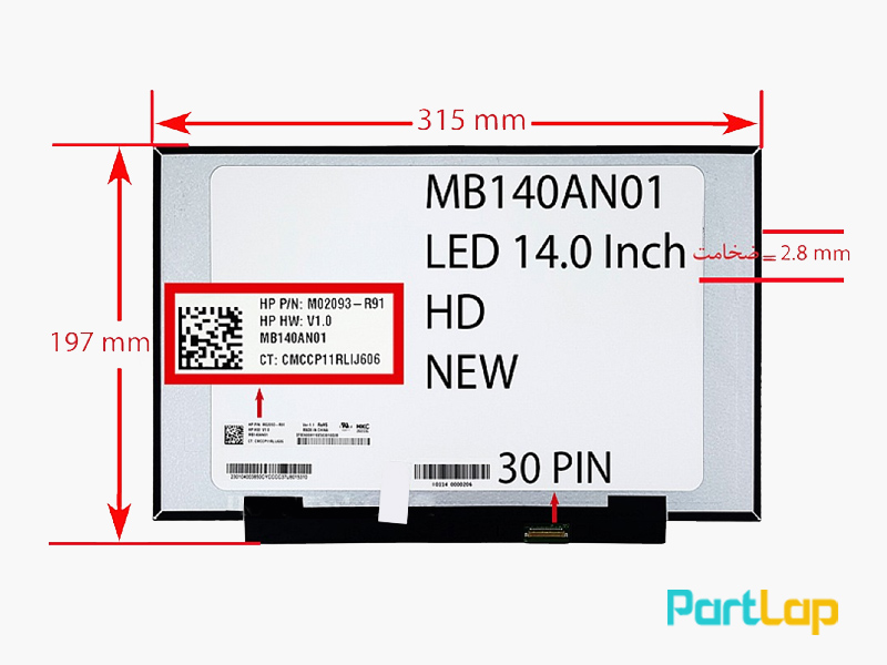 صفحه نمایش لپ تاپ 30 پین MB140AN01 ، خرید با پایین ترین قیمت و گارانتی کیفیت پارت لپ