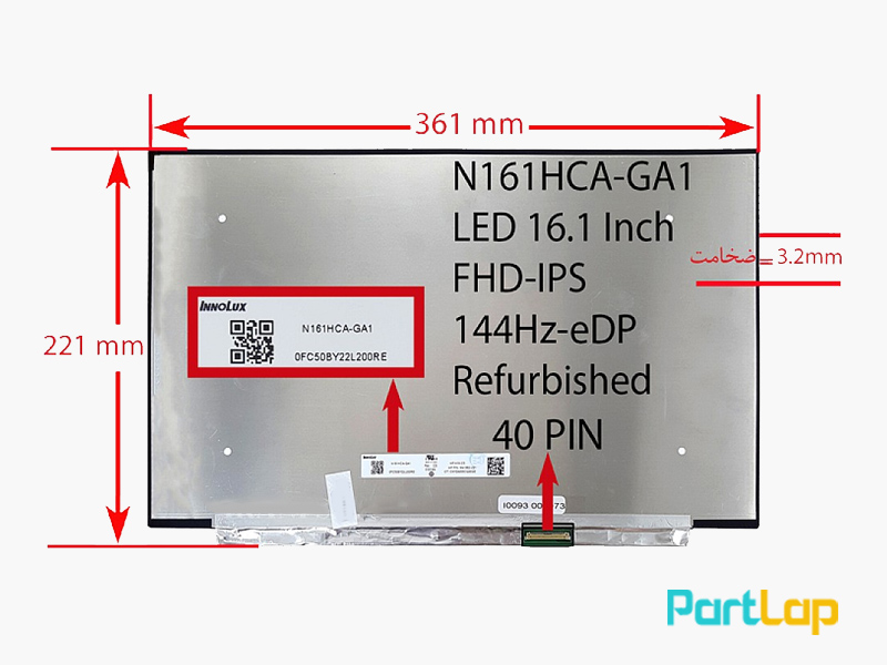 صفحه نمایش لپ تاپ 40 پین مدل N161HCA-GA1 ، خرید با پایین ترین قیمت و گارانتی کیفیت پارت لپ