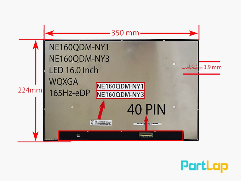 صفحه نمایش لپ تاپ 40 پین مدل NE160QDM-NY1 ، NE160QDM-NY3 ، خرید با پایین ترین قیمت و گارانتی کیفیت پارت لپ